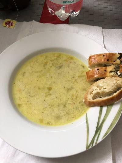- Butter in einem Topf zerlassen und Lauch und Knoblauch glasig anschwitzen